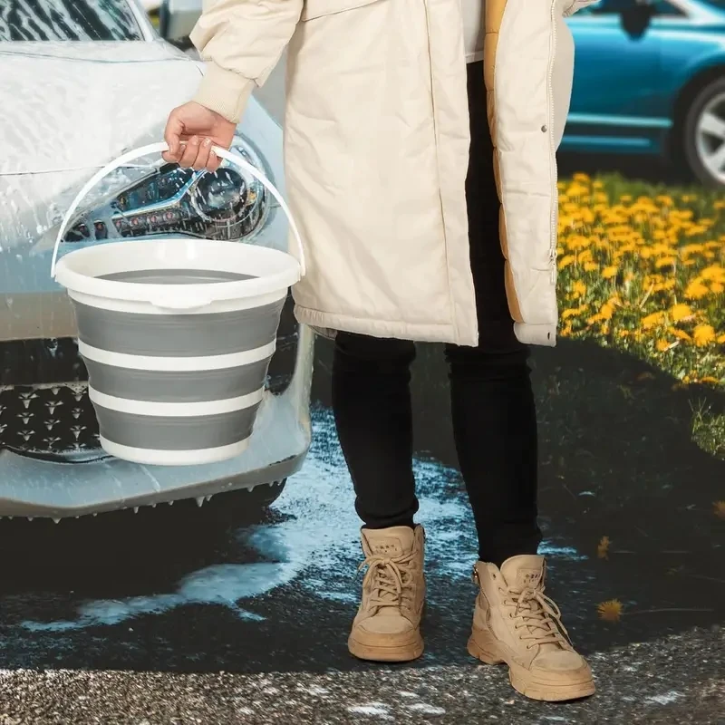 10L Portable Silicone Collapsible Bucket Compact & Foldable for Camping Fishing Car Wash Easy-Carry Handle Space Saving Design