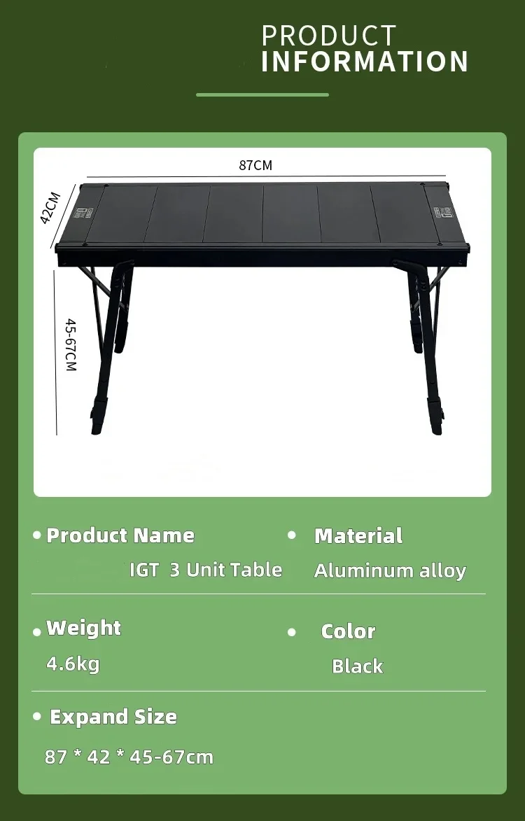 IGT 3 Unit Folding Aluminum Alloy Table Portable Picnic Table Lightweight IGT Table 0.5 Unit High Fire Gas Stove Camping Table