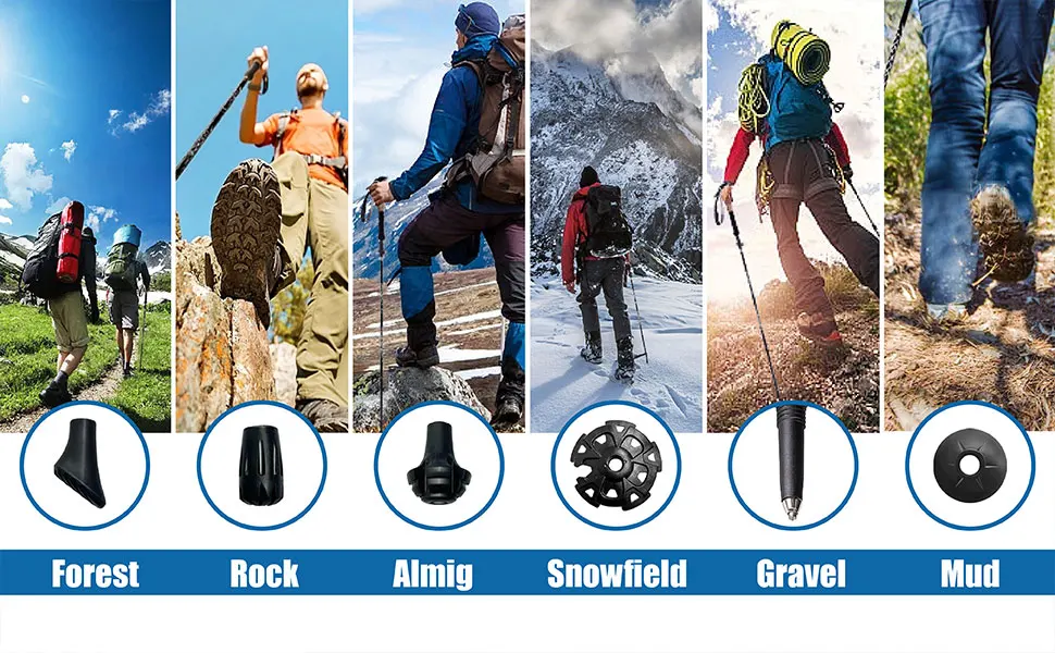 【ESSENTIAL TOOL FOR HIKER】 Whether you're hiking on rugged terrain or snowshoeing on fresh powder, you need hiking gear that can keep up! upgrade trekking poles are built tough enough for the long haul.Indispensable tool for walkers, backpackers, and mountaineers.