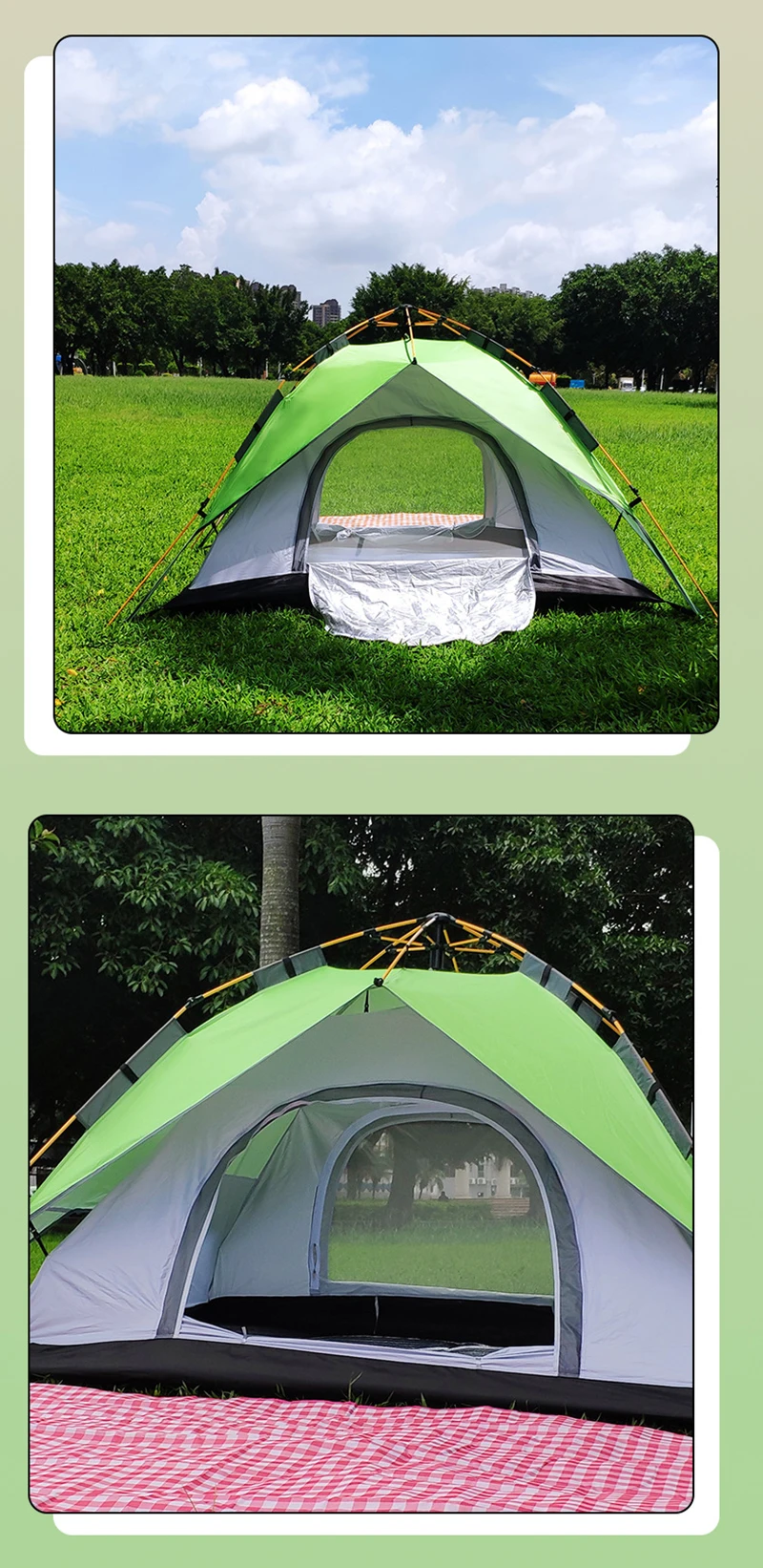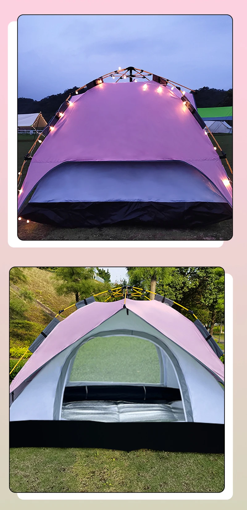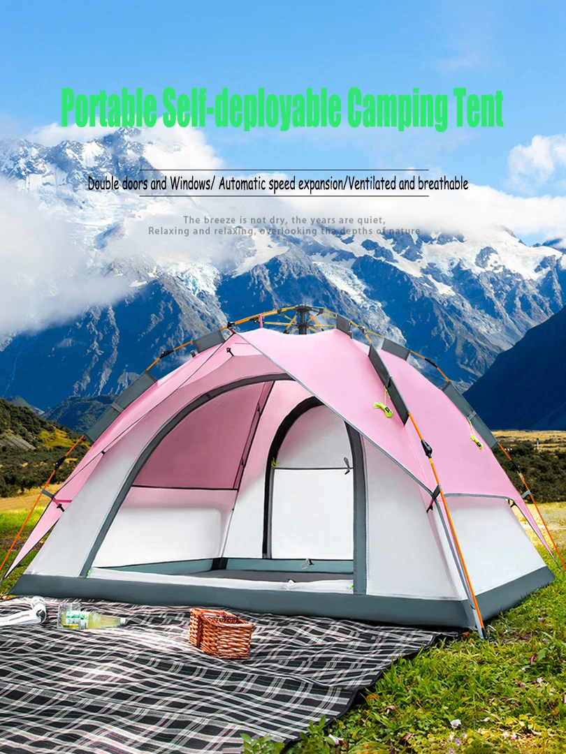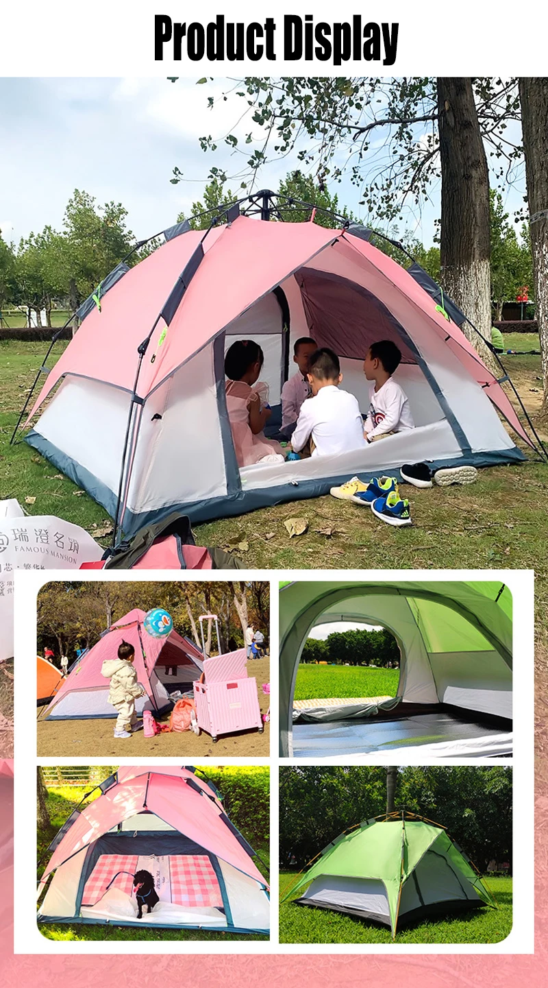 4-5 People Large Tent Quick Setup Family Camping Tent Pink And Green Tent Camping Hiking Foldable Folding Tent Double Layer