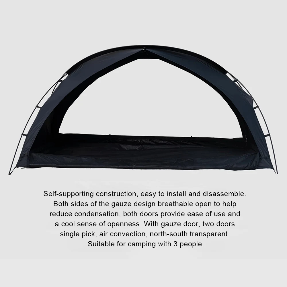 4.Spacious Interior: Designed with large front and rear doors for easy access and panoramic views, the trekking shelter tent offers ample space for two people to lie down or up to four people to sit comfortably.