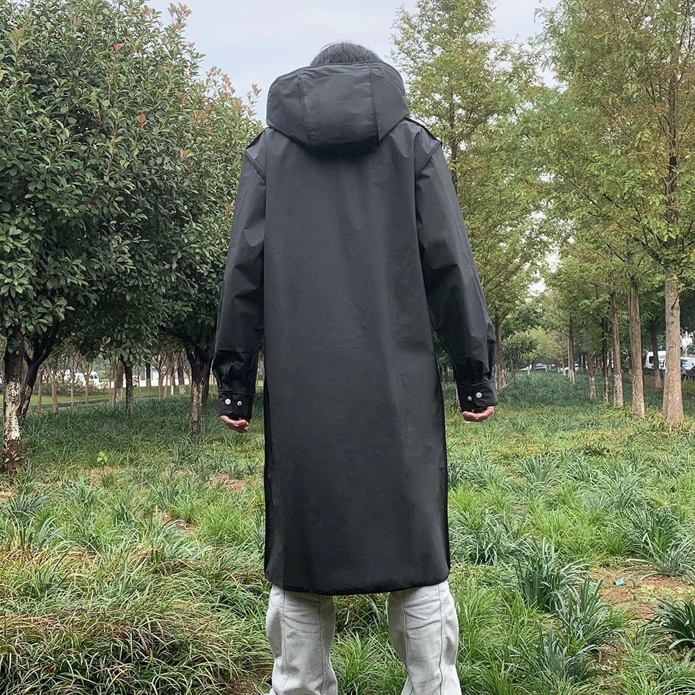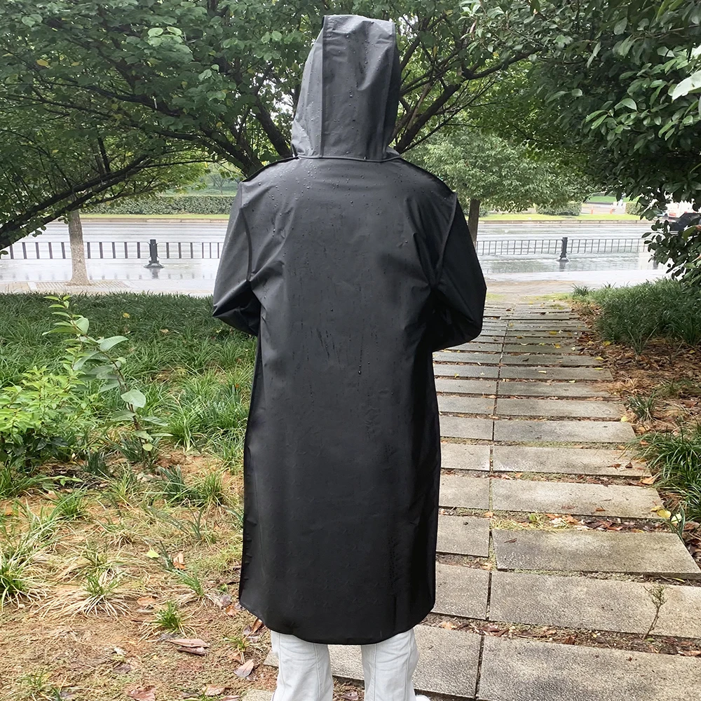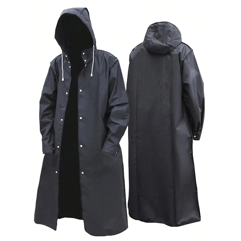 1pc Black Adult Hooded Long Raincoat Men Women Poncho Waterproof Jacket Impermeable Over Coat For Outdoor Hiking Travel Fishing