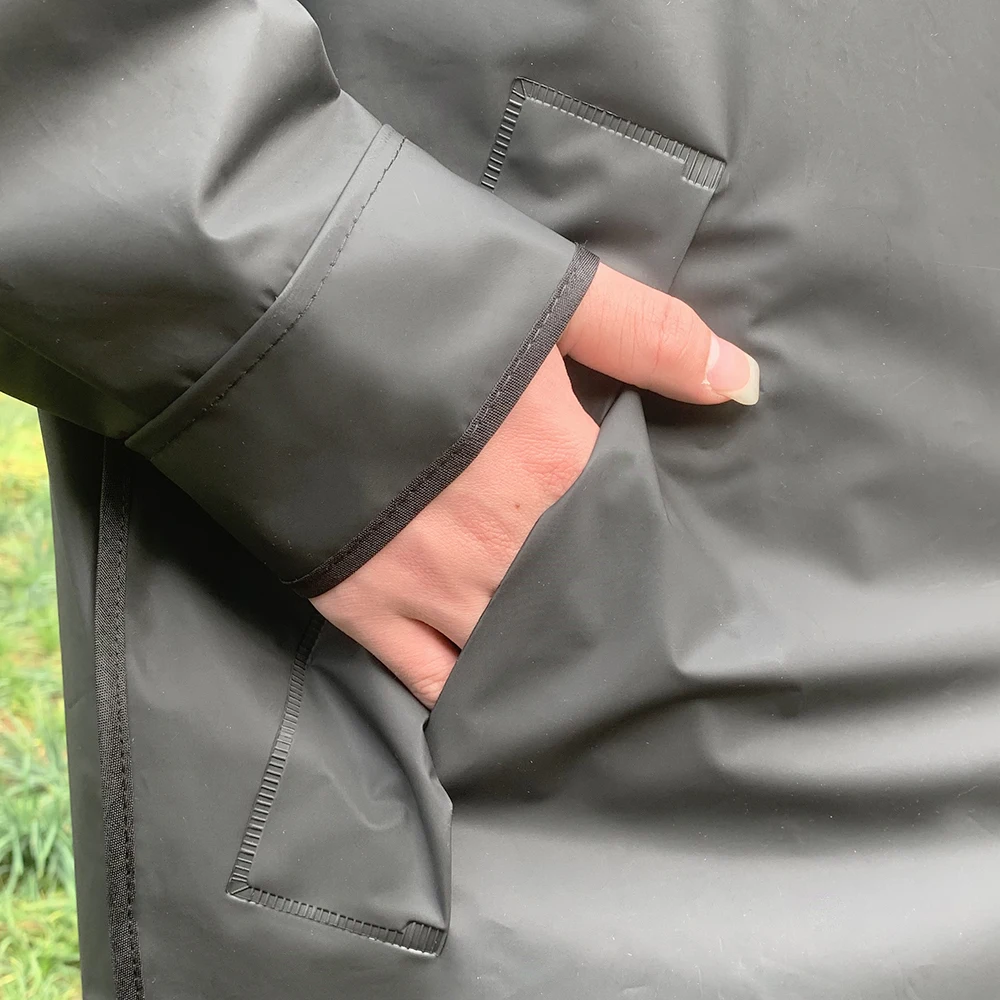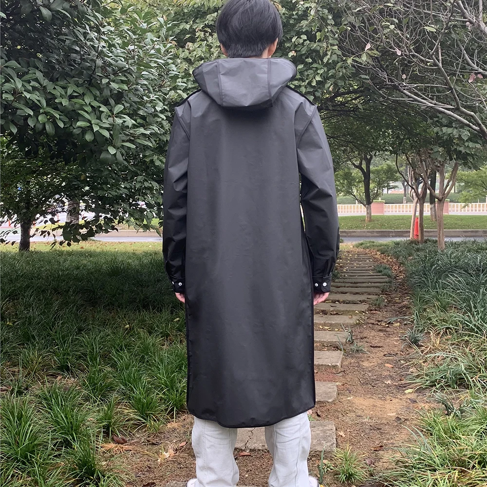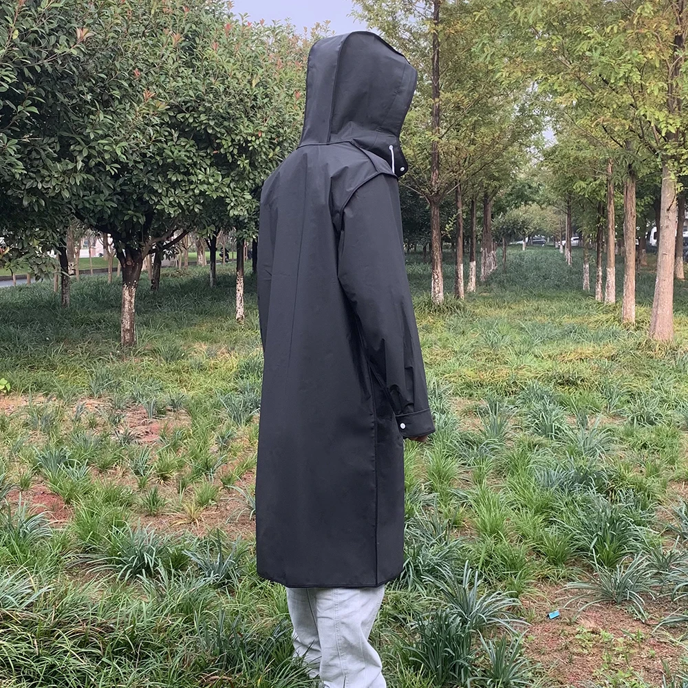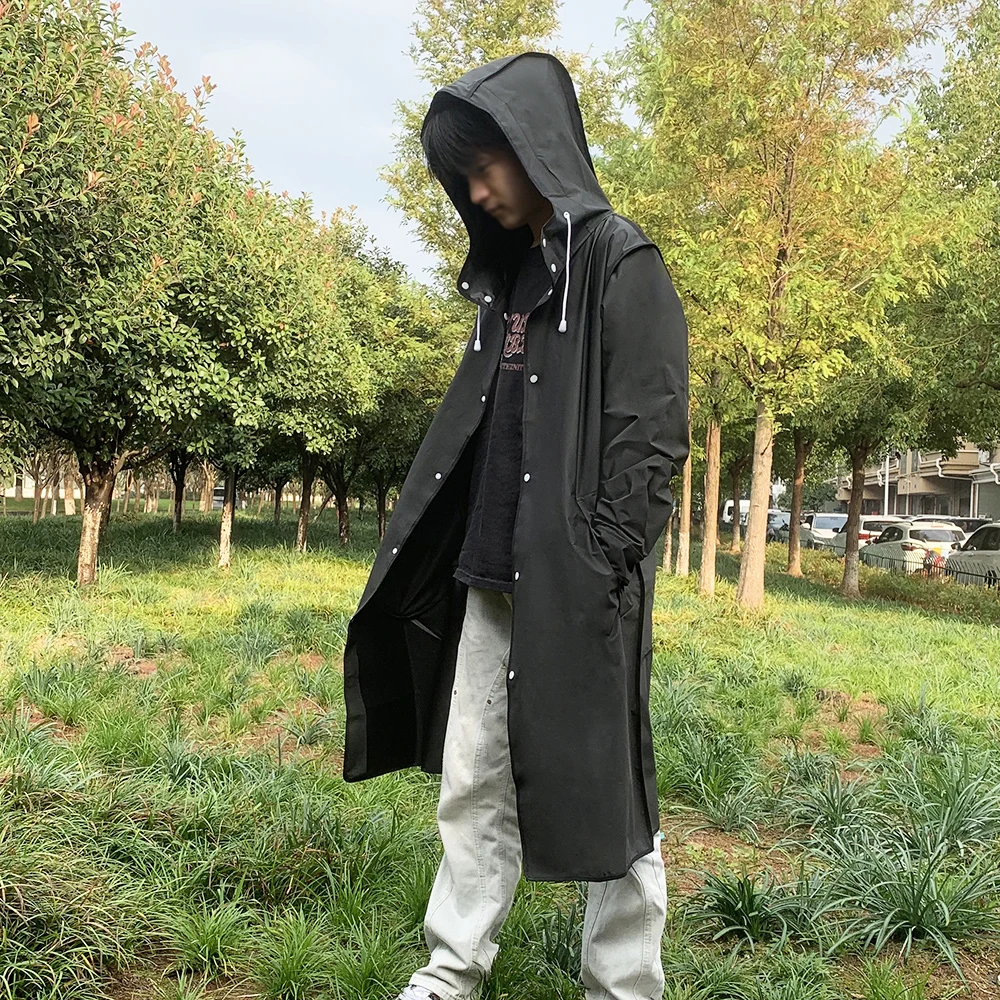 1pc Black Adult Hooded Long Raincoat Men Women Poncho Waterproof Jacket Impermeable Over Coat For Outdoor Hiking Travel Fishing