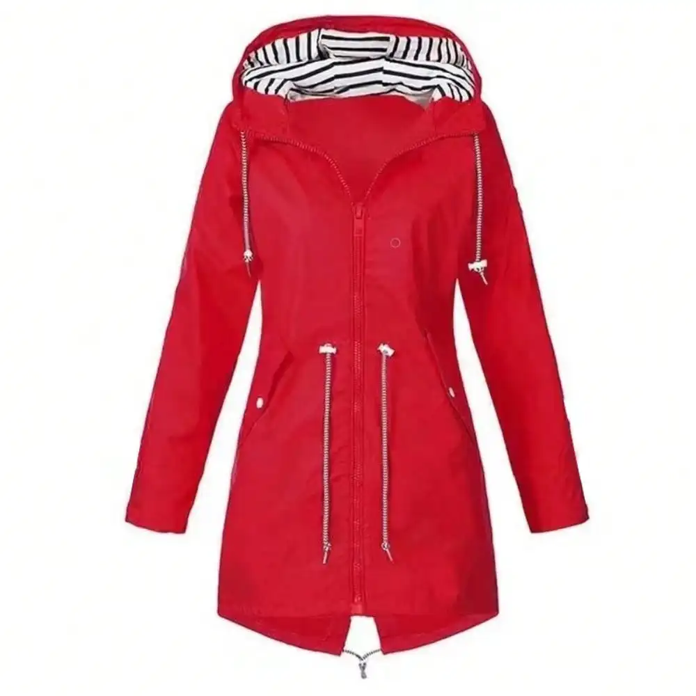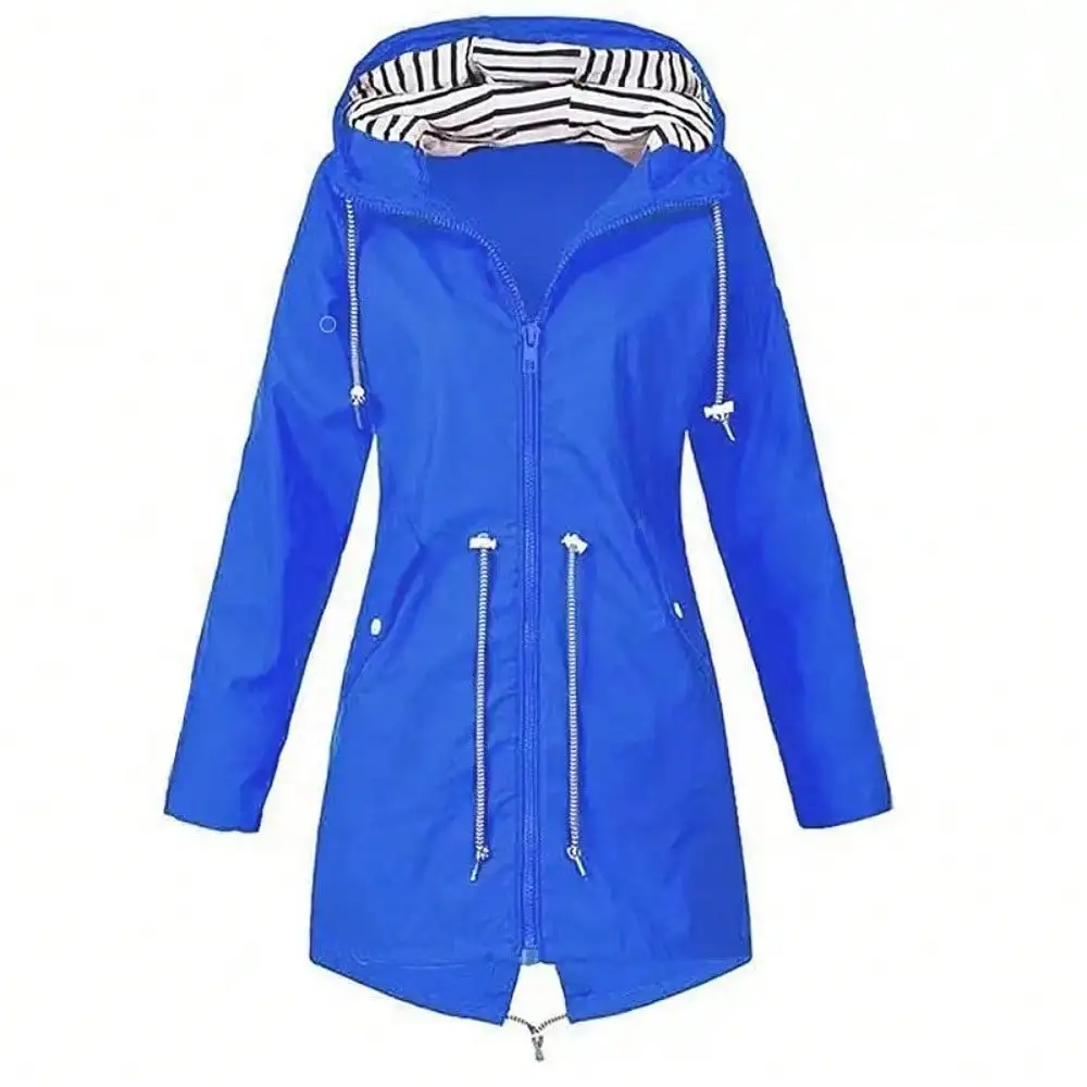 2025 New Long-sleeved Raincoat Zipper Women's Jacket Outdoor Hooded Mountaineering Jacket Waterproof and Windproof