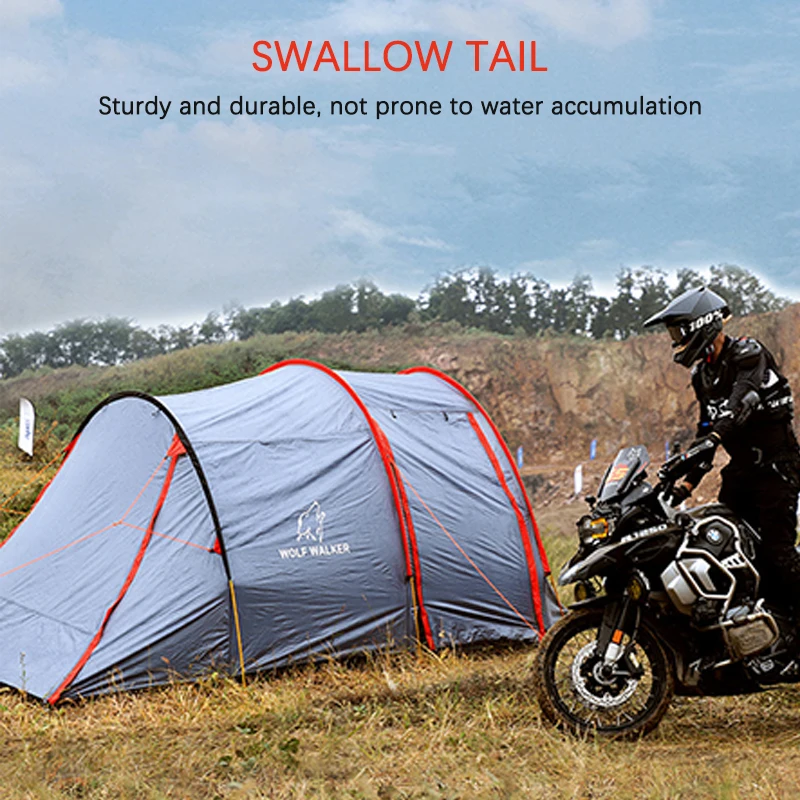 ·This camping tent with spacious design stores a full-sized motorcycle with room for 2-3 people to sleep comfortably;Includes a separate, secure enclosure attached to the inner tent for storing your bike and gear.