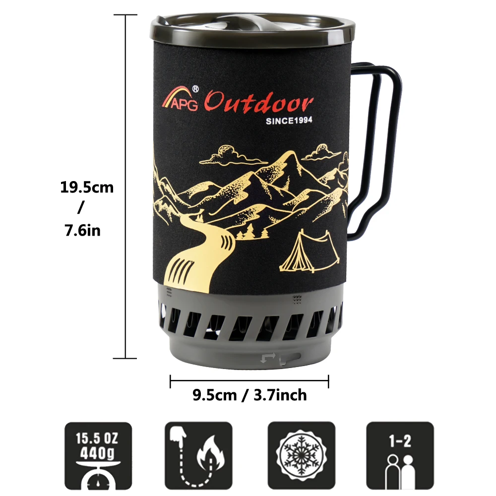 Wild's APG Portable 1400ml Cooking System Outdoor Hiking Camping Stove Heat Exchanger Pot Propane Gas Burners