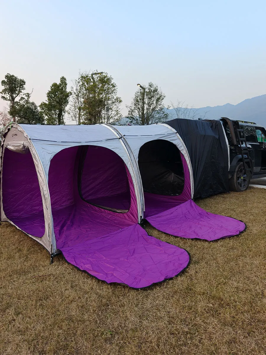 Zipper-Connected Tailgate Tents:A two-room Camping Tent with Additional Sleeping And Living Space,connected to the SUV